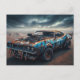 Blue Classic 1969 Chevy Camaro med blåsare och rost i öknen under apokalypsen.