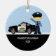 Det här är en gullig polis. Han är klädd i en blå polisuniform. Han har blonda hår och har en arm upphöjd. Han står bredvid en svart polisbil. Den översta har en ljusblå bakgrund medan grund är svart med ett tunt vitt gräns. Anpassa för att göra det speciellt! Kolla in våra många andra modeller! ©scrappindoodles
