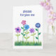 Ett söt Apologikort med en rad rosa, blått och lila blommor som skjuter upp sig genom gräset, från ett handmålat pappert kollage av Judy Adamson. Kontakta mig genom min butik om du vill att texten på framsidan ska ändras och insidan lämnas tom för ditt eget meddelande.
