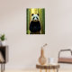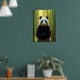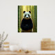 En charmerande illustration av en söt panda som står fredligt mellan högt bambu träd, med solskenströmning genom skogen. Perfekt för djur älskare, naturdecor och konstsamlingar för vilda djur och växter.
