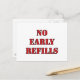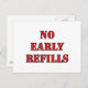 Den här designen innehåller en skylt som säger "Inga Tidigt-påfyllningar" för att hjälpa apotekare och apotekstekniker att förklara att tidigt receptbelagda påfyllnad är uteslutet.