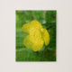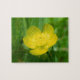 Det är en solig gult-knapp som är full med färska regndroppar.