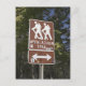 Foto av det klassiska Appalachian Trail- tecknet i brunt och vitt med ikon och träd i bakgrunden. Fotot togs i New Hampshire.