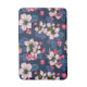 Äppelblommar på en mörk blått badrumsmatta