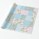 En söt, feminin Wrapping Papper med Faux Patchwork mönster med en vintage vibe. Rosa, blått, grönt och vit Blommigt, Leafy and Check Gingham mönster är en del av Posh & Painterly 'Apple Blommar'-samlingen.