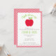 Ett modernt äppeldesign i ljust röd och grönt. De här inbjudningarna kan vara personlig med din text och är perfekt för en äppelmodig födelsedag eller babydusch.