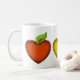 Sötlärarens gåva mugg, med ett rött, en gult och en grönt hjärtformade äpplen. Anpassa för att lägga till egen text.