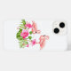 Apple iPhone 14 fodral visas i en tropisk flamingotryckt design. Anpassa eller köpa som det är. Bild för lagrar Lagrar