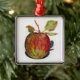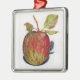 En färg-blyertspenna teckning av ett rött äpple och grönt i slutet av äppelskördesäsongen lägger märke till denna ornament!
