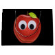 Den design du beskriver verkar charmig och lekfull. Ett äpple med röd tecknad med stort googly ögon ge är ett levande och animerad föremål. Den röda färg i äpplet kan visa sin färskhet och livlighet, medan leendet och det stora glappande ögon tillför en vänlig och roligt beröring till utformningen.användan av tecknad inslag, såsom det överdimensionerade ögon och leendet, förstärker mönstrets barnlika och underhållande karaktär. Det skulle kunna ge ge intrycket att äpplet har en egen karaktär eller till och med en egen personlighet och skapar det lämpligt för olika tillämpningar, t.ex. i bokar, tecknader eller som dekorativt inslag. På det hela taget ger utformningen en positiv och roligt stämning genom att man kombinerar rött färg, tecknad stil och människoliknande uttryck.