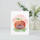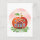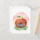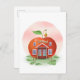 Ett glansigt, ljust, rött äpple är ett magiskt, litet skolhus mot en tidigt morgon himmel. Ursprunglig illustration av Noël Snö.