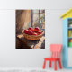 Denna livfulla impressionistiska målning fångar en korg med nyplockade äpplen badade i varmt solljus från ett närliggande fönster. De rika röda nyanserna av äpplena kontrasterar vackert mot det mjuka, naturliga ljuset och skapar en känsla av värme och överflöd. Inspirerad av impressionismens mästerskap inom ljus och textur, för den här konstverket med sig en touch av naturens skönhet in i vilket rum som helst, vilket gör den perfekt för köksdekor eller rustika vardagsrum. De mjuka penseldragen och glödande färgerna frammanar känslor av enkelhet och lugn, vilket gör den till ett idealiskt val för konstlskare och de som uppskattar det vardagliga livets skönhet. Finns i flera format för må