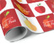 Elegant retro stil amerikansk broschyr med äpplen och päron mot en röd styrd gingham-bakgrund. Lägg enkelt till dina egna texter.