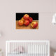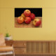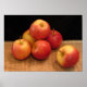 Denna poster har en mycket enkel livssammansättning med sex vackra glansigt röda och gult äpplen på ett halmmat mot en svart bakgrund.