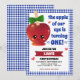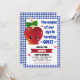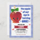Äpplet för Vårt Öga Pojkfödelsedagsinbjudan - Nu har vi lite hemlig “in-cider” information till er alla. Vi presenterar denna fantastiska och mycket “läcker-peeling” pojkfödelsedagsinbjudan. Med en vänlig liten godisäpple med frasen äpplet för vårt öga. I bakgrunden, ett ljust rutmönstrat mönster, inspirerat av en picknickduk. Njut av din lilla äpples födelsedagsextravaganza med denna mycket fräscha och luftiga inbjudan.