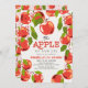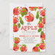 Den här söta och moderna inbjudan till flickans 1-årsdag "äpplet i vårt öga" har äpplen och blommor på en krämfärgad bakgrund. Baksidan har en rosa bakgrund med äppelmönster. Anpassa den efter dina behov. Du hittar matchande produkter i min butik.