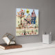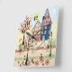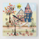 Applique, hus, by fyrkantig klocka