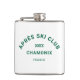 Après Ski Club, vinterskott flaske för skidortens krön. Anpassa med året för din skidresa, skidortens namn och plats. Perfekt för en grupps skidresa, som en present för att minnas en tidigare resa eller för en Après Ski tema för möhippa eller s