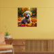 Cute Apricot pudel-marionett hund spelar i gult höst löv konst.