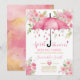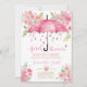 Rosa paraply Aprilskurar ger majblommor Rosa blommig baby shower-inbjudan