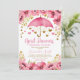 Rosa paraply Aprilskurar ger majblommor Rosa blommig baby shower-inbjudan