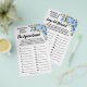 Blue Flower The Apron Game möhippa English and Spain version (front and back) medföljer. Ändra formuleringen till engelska och spanska versioner. Om du vill göra ytterligare anpassningar (ändra antal objekt, annan text, font färg, font stil ) klickar du på personalize, rulla down (ändra antal objekt, annan text, font ) och klickar på länken "click to custom more" (klicka för att anpassa ytterligare). HUR DU SPELAR: Gäster att gissa hur många artiklar de minns var på Bride to be's apron.