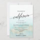 De här akvasstranden i Kalifornien välkomnar brev och färdkort är perfekt för ett tropiskt destinationsbröllop. Den enkla och moderna designen har en fantastisk turkos, teal- och ljusblå vattenfärg med en mjuk guld-gnistra som påminner om sand och hav. Den är parad med en fantastisk elegant-kalligrafi. På kortets framsida finns ett välkommet brev och på kortets baksida finns en rutt i bröllop. Dessa anteckningar är perfekt för destinationsbröllop och hotellgästväskor. Obs! Den här designen har inte guld glitter. Det är en högkvalitativ grafik som framstår som en småaktig gnistra i guld.