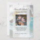 Uppfriskande och klassisk design med en akvamarin grönblå havsstrandscen med vita vågor som bryts mot kusten. Friskt klarblått vatten och vit sand med blå himmel och vita, luddiga moln. I förgrunden syns en vacker vit orkidéblomma närbild i hög kvalitet. Denna lugna och fridfull zen-bild är perfekt för ett strandbröllop eller en resa till spa-anläggning med temat semester och resa för speciella evenemang eller affärstillfällen. Slappna av medan du får massage, spa-manikyr eller pedikyr på salongen. Njut av avkoppling och fridfullhet vid havet och stranden. Alla mönster Copyright © 2012 www.CustomInvitesOnline.com