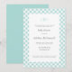 Lätt att anpassa formell och elegant text ser chic ut ramad av ett kantmönster av blekt aqua blått gingham-ruta med ett enkelt traditionellt tre bokstävers monogram högst upp på denna klassiska baby shower-inbjudan.