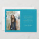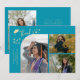 Modern och whimsisk examensannonserings fotokort med 3 bilder på framsidan och 1 på baksidan. Texten säger "Tack" med gnistrande stjärnor. Lägg till examenens namn, information och meddelande för att anpassa detta kort. Aqua blå.