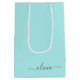 Aqua Blå Teal Enkel Skript Monogram Namn Presentpåse. Detta gör den perfekta söta 16-års födelsedag, bröllop, bröllopsdusch, årsdag, baby shower eller möhippa presentpåse för någon som älskar glam luxuöst och chic stilar.