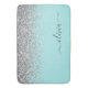 Aqua Blå - Teal och Silver Falskt Glitter Skrift Monogram Namn Baddriftsmattor. Detta gör den perfekta examen, födelsedag, bröllop, bröllopsdusch, årsdag, baby shower eller möhippa present för någon som älskar glamour luxuöst och chic stilar.