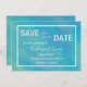 En abstrakt design med akvamarinblått hav med anpassningsbar text, perfekt för din strandbröllop.