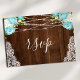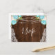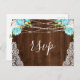 Aqua Blommigt Rustic Wood String Ljus Bröllop OSA Vykort