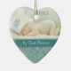 Den här helgdag har ett eget baby-foto med ett grund gräns av elegant aqua blue blommigt-snurrande. En mörkare tealbanderoll innehåller din anpassade text. Gör det spelar ingen roll att du vill! Baksidan av dekoratet har samma akvaliknande blommigt som snurrar mönster och tealbanderoll med ytterligare text. Det här är en trevlig keepsaksgåva till nya föräldrar.