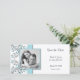 Elegant Spara datumfotokorten med elegant aqua och grått blommigt rulla design. Mall som är enkel att använda och som finns i flera färg-scheman.