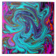 Aqua Blue and Black Groovy Abstrakt Retro Art Kakelplatta