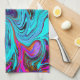 Aqua Blue and Black Groovy Abstrakt Retro Art Kökshandduk