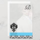 Aqua Blue Damask Monogram Bröllop Brevpapper