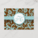 Aqua Blue Damask på Brun Damask-bröllopskort Visitkort