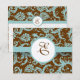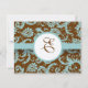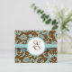 Monogram Nya storlekar Elegant Vintage Aqua Blue Damask på brunt bröllopsinbjudande-
