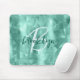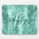 This elegant personalized mouse pad features a monogram and first name in modern script on a geometric pattern of aqua blue faux brushed metal polygon shapes.