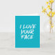 Ett sött och söt födelsedagskort med ord I Kärlek Din Ansikte i vitt på akvblått underlag. Inuti texten står Grattis på födelsedagen, men du kan ändra det eller lägga till det hur du vill!