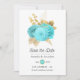 Aqua Blue och Guld Blommigt Bröllop Spara Datumet