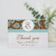 Aqua Blue på Brown Damask bröllopsdag - tack. Tack Kort