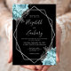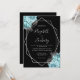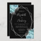 Aqua Blue Silver Floral Black Wedding Inbjudningar