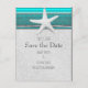 Aqua Blue & Silver Starfish Strand Spara datum Vykort.