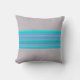 Aqua Blue Stripe Mönster på Silver Grått Kudde