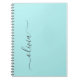 Aqua Blue Teal Modern Script Girly Monogram Namn Anteckningsbok