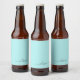 Aqua Blue Teal Modern Script Girly Monogram Namn Ölflaska Etikett